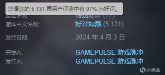 游戏在24年4月发售后至今,这款游戏在steam商店评价页面保持着97%的好评率。